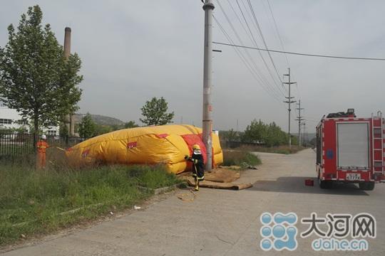 消防队员立即铺设救生气垫和草垫。(杨光武 摄)