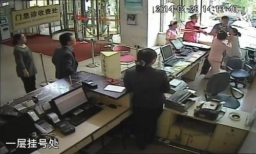 本以为事情就此结束,小怡称,自己当时正和其他工作人员讨论怎样挂号更合理,突然在二楼的王某冲下来再次进入工作区域,并对小怡大打出手,发生文章开始的那一幕。