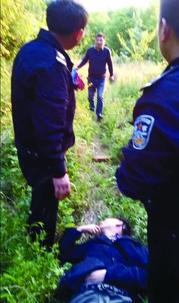民警在草丛里找到喝药自杀的许某。 警方 供图