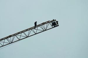 两女子因被煤矿辞退酒后爬上塔吊 酒醒不敢下来