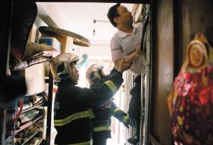 消防官兵爬窗入户