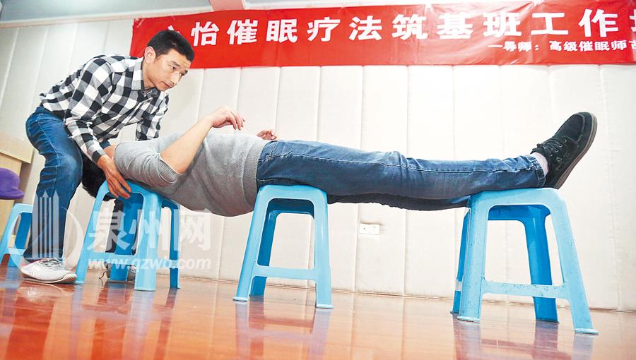 记者体验催眠术:身体僵硬 悬空站人不觉重(图)
