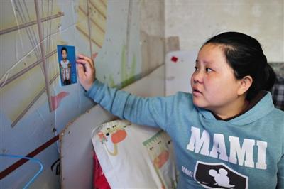 5月10日,在位于清河的家中,看着儿子鹏鹏生前的照片,妈妈李丽萍忍不住再度伤心落泪。本版图片/新京报记者 王叔坤 摄