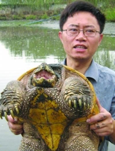 尹向东展示手中的鳄龟
