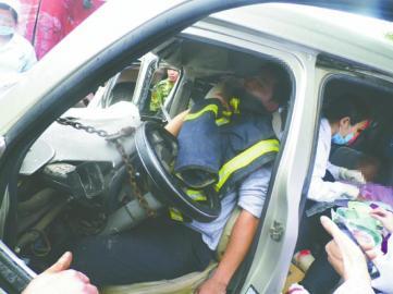 由于李春腿部被方向盘和变形的车头卡住,消防人员破拆受损面包车,将他救出后送往医院救治。由于婴儿伤情较重,随后被送往泸医附院救治。