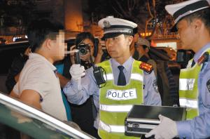 交警用酒精测试仪对疑似酒驾车主进行测试 警方供图