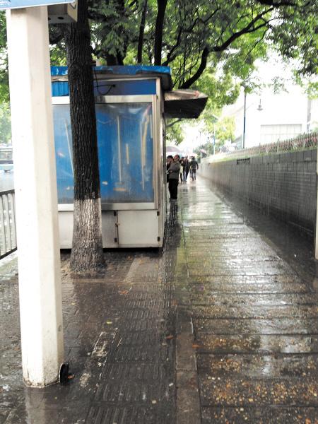 报亭 占道 中南大学湘雅二医院附近,人民路北面的盲道,被一个报刊亭“拦腰斩断”。
