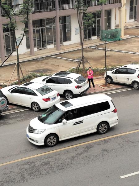 小车 占道 天马路上,车辆直接停在了人行道上,盲道被挡得严严实实。 均为刘军 摄