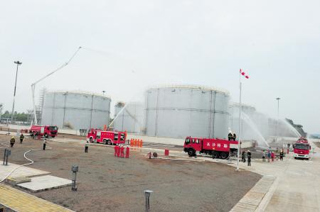 长沙消防开展消防演习 半小时扑灭油罐“大火”