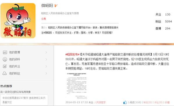 昭通市昭阳区人民政府新闻办公室人民微博截图