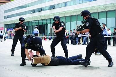 南京警方举行反暴恐实战演练 5分钟"击毙"持刀暴徒