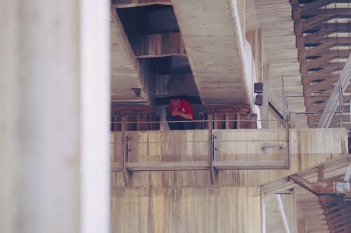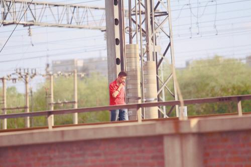 15日10时多,明廉公铁桥附近20多米高的高铁专用线上,出现了一名红衣男子。
