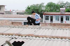 就在此时,一大块石棉瓦突然从房顶掉了下来,大家正倒吸凉气时,小吴已被辅警李龙拉了回来,而李龙的双腿因救人被石棉瓦划伤,鲜血直流。而此时,为消除一家人的矛盾,化解这场闹剧,李龙和张鸣仍然耐心开导当事人一家,直到彻底打消了轻生的念头后,才放心去医务室包扎。