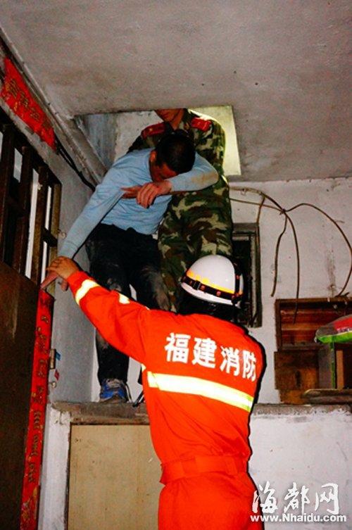 于是,民警与该男子说话,吸引他的注意力,消防官兵悄悄靠近,趁其不备一把将他拉到安全地带。因为男子腿脚不便,救援人员将他搀扶下楼。