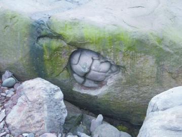 记者用手捏了一下“石花”,试图将石花掰下来,但石花与石头融为一体,花瓣如石头般坚硬,无法“采摘”。