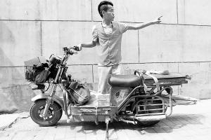 ■蔡晓康的电动自行车立了大功。本报首席记者 李青 摄