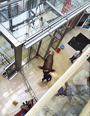 “大悦城来了重量级嘉宾——海象君,不过它赖皮地不愿进笼子,在地上打滚。”昨天下午,网友Eve3523在微博上发布照片,一只海象在大悦城门口委屈地扒住门框,不愿离开,萌翻了一众网友,纷纷留言:“让海象君留下来。”原来,这只海象来自天津极地海洋馆,昨天12点左右,它在大悦城表演完后不愿意跟驯养员回“家”,在大悦城地板上撒了两个多小时的娇后才离开。