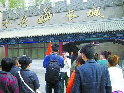 旅游车停进居庸关长城的停车场后,游客们下了车,其他游客直接前往景区,而刚刚在车上没有补交费用的乘客则被导游拉到背阴的地方“开了个小会”。时间不长,这几位游客也进了景区。