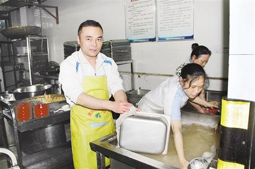 王玮每天都到学校食堂打工。记者 李星婷 摄