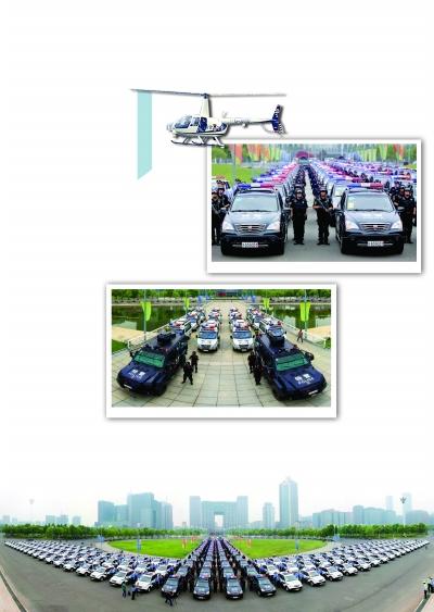 两辆装甲车、带摄像头的直升机、128辆巡逻车、52辆武装巡逻车、14辆移动警务车。昨天,这些装备和400多名民警在南京警方举行的“平安青奥、平安南京”武装誓师大会上亮相。扬子晚报记者了解到,新街口、火车站等重点区域如遇紧急情况,南京警方将做到一分钟出警,以最快的抵达速度、最小的隔离范围、最强硬的手段,打击各类暴恐活动。
