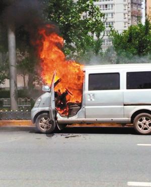 面包车自燃火势很大 图片由网友Maymaymay-Sun提供