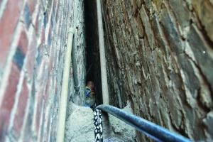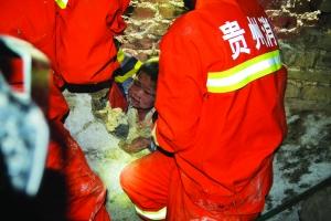 5月19日上午11时,毕节七星关区水西大道路段,一5岁男孩和小伙伴在堡坎边玩耍时,不慎坠入堡坎与紧挨公厕之间的缝隙中。整条缝隙宽度仅为20厘米,高约7米,而下方2米高处中间部位有砖墙垫底,男孩卡在其间动弹不得,放声大哭。家人闻讯后赶到,先用棍子试着将孩子拖出,但因卡得太紧,无法成功。此后家长又想了多种办法,均未果。心急如焚的家人经人提醒后拨打119向当地消防求助。