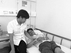 岱邦俊家里经济条件差,这次看病的1万元还是澄迈县金安农场领导给的,现在已经花完了。王爱霞说,她很发愁以后的医药费。她说,家里以务农为生,只有几亩田,两个儿子也没有工作,在家里帮忙做农活,收成好时一个月才赚几百元。“现在他病了,我都不知道该怎么办。”