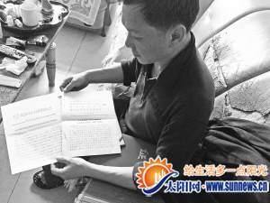 兰先生向记者展示儿子的表彰文件。记者 陈璐摄