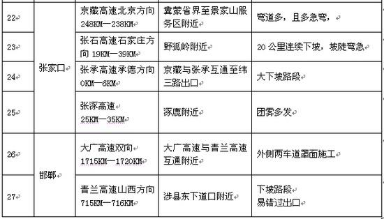河北高速交警公布27处易发事故路段 出行需谨慎