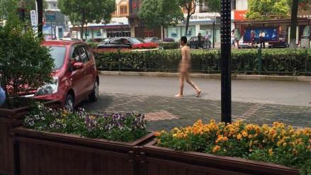 图说:奉浦环城东路新都汇附近,有一男子赤身裸体行走在路上。微博图