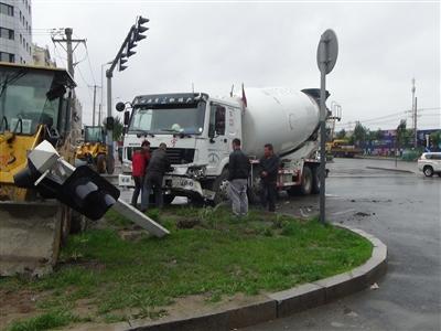 哈尔滨一水泥罐车与公交相撞 公交车内2人受轻伤