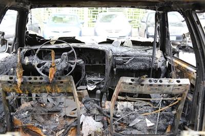 三辆车被烧成空壳 一辆本田和一辆奥迪车尾被烧