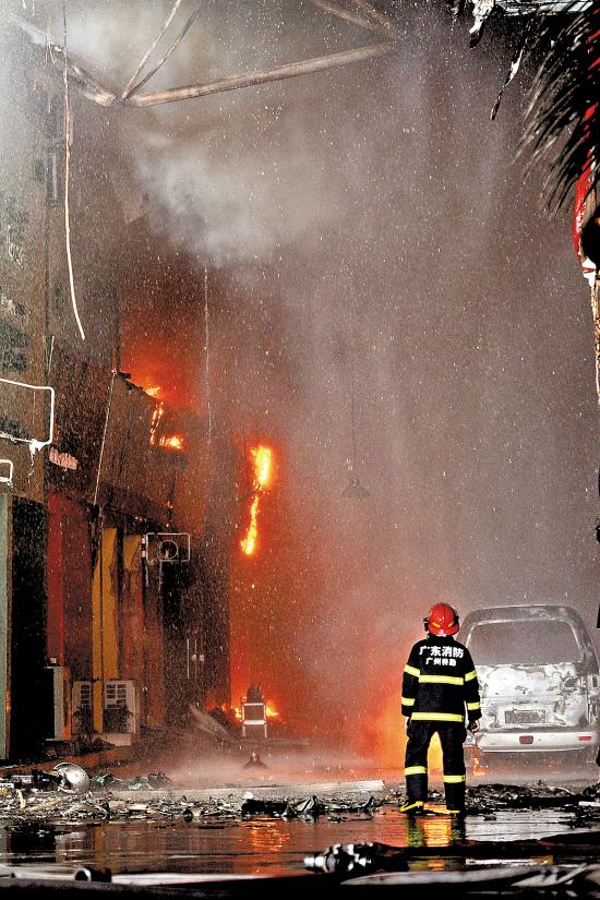 广州一摩配城突发大火 曾传出爆炸声伤亡不明(图)