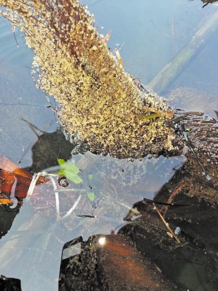 大量鱼卵附着于人工鱼巢上。刘渔 摄