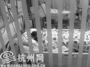 重症监护室里的金妈妈(图下方),隔壁床的老人前几天因为吃年糕堵了气管。