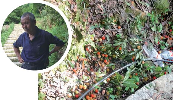 “来偷的都是附近的外来务工人员,有些还带着自己的孩子过来摘。他们大都带着塑料袋和编织袋,是有备而来的。”张老汉说,有不少人为了图方便,就爬到树上,使劲地摇晃,使杨梅掉落在地上,再从地上拣一些好的。有些杨梅长得比较高,他们摘不到,就干脆把整个树枝都给折下来。每当发现有人在偷杨梅,张老汉就马上冲上去,想加以劝阻,但还是有些人不搭理他,只管自己继续摘。