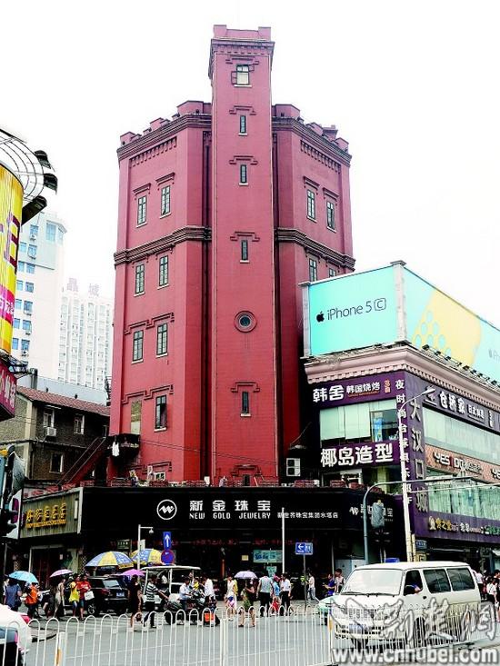 5月30日中午,记者穿过繁华的中山大道,在前进五路交汇处,一栋红色的7层建筑物映入眼帘,这就是1909年竣工、有着105年历史的汉口水塔。
