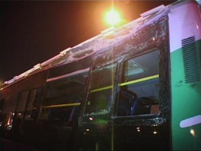 公交车右侧尾部的车窗被撞坏
