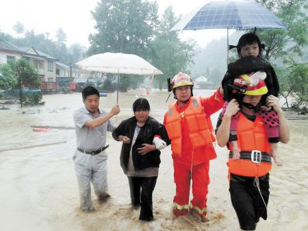 昨日,怀化市芷江县内普降大到暴雨,库塘水位骤涨,溪河洪水暴增,导致全县严重洪涝灾害。从昨日凌晨5时至上午12时,芷江县消防大队共出动消防车辆5台次,官兵30余人次,从洪水中营救被困群众260余人,疏散受洪水威胁群众700余人。在320国道芷江县土桥乡盐田铺,消防战士营救十余户被洪水围困群众150余人,其中有小孩、老人和孕妇。