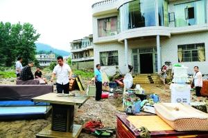 受灾群众正在整理物品