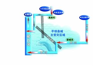 袭击县城的两路洪水,一路由白水龙、小干河水库溢出,冲向该县城关镇尧南村,经迎宾大道汇入槎白河,溢出河岸流向县城。一路由双龙山塘水库溢出,沿南门河流向县城。