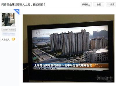 记者发现,近些年,网络不断有消息称“昆山花桥即将并入上海”,近期还有网民发布“上海昆山两地就花桥并入安亭举行首次磋商会议”的新闻视频截图,并咨询真实情况,引发热议。
