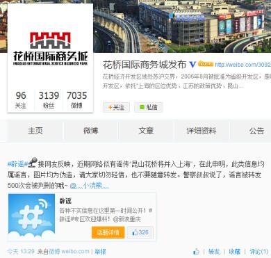 日前,网上有传言称“昆山花桥将并入上海”,此事引起网民关注。今日,江苏昆山花桥经济开发区官方微博对此事进行辟谣。