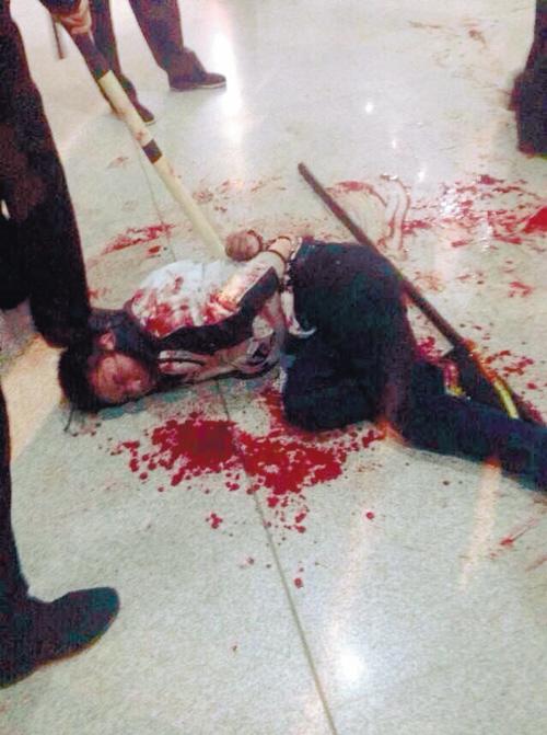 被民警制服的行凶男子