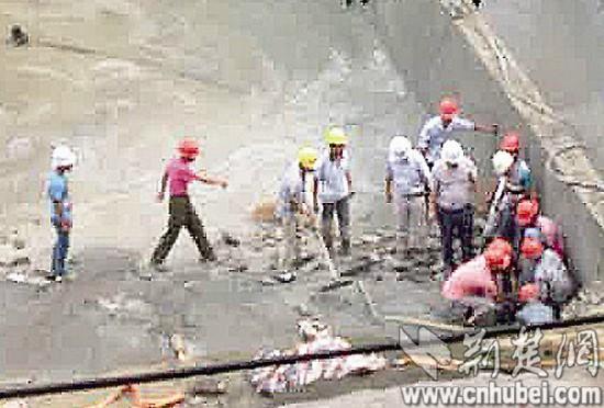 武汉一工地围墙垮塌压1人 工友徒手扒砖营救(图)