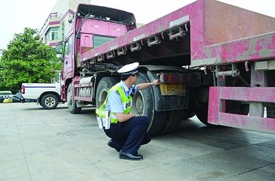前不久,高速二大队交警韩龙经过大队办公楼时,发现停放着一辆皖S牌照的重型半挂货车。南京二桥、绕城公路已全天禁行外地货车,竟有人堂而皇之地把车辆停在交警大队旁,韩警官对此产生了疑问,他上前查看后,发现驾驶员不在车内。随后,韩警官通过网上查询车牌信息,竟发现该车牌没有登记。绕着车走了一圈,韩警官有了重大发现,该车悬挂的2块牌照不一样,车头悬挂的是“皖S166××”,而车身中段悬挂的是“皖S188××”。通过网上查询,他发现车头“皖S166××”号牌在二桥的闯禁区曝光竟然高达20起,在南京其他地区曝光6起。事实确凿后,韩警官查询到驾驶员电话,并通知他尽快前来处理。