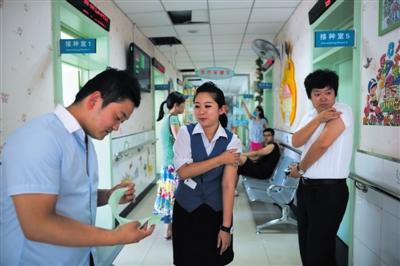 据记者统计,在昨日下午13时40分至14时40分的一个小时里,共有16人前来昌平区城区社区卫生服务中心接种麻疹疫苗,其中年轻人较多。