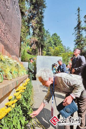 民众在中国远征军抗日将士纪念碑前献花 记者 苏颖 摄