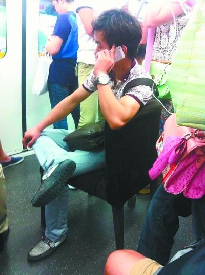 武汉土豪手机哥自带“豪华软座”乘地铁(图)