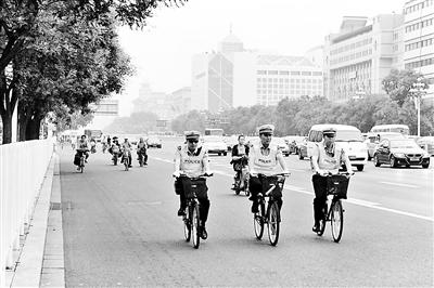 北京交管局领导干部每日三班骑车巡逻(图)